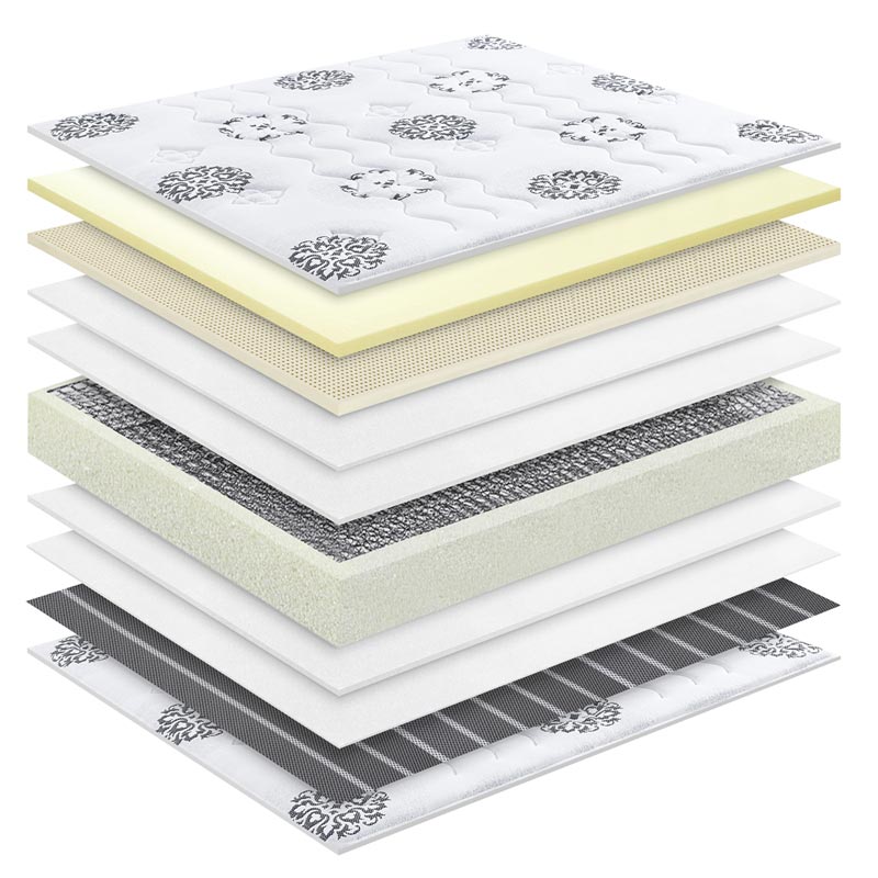 A rugók feletti párnázórétegként prémium, nagy rugalmasságú habot használunk. Többszörös tömörítés mellett tesztelve és